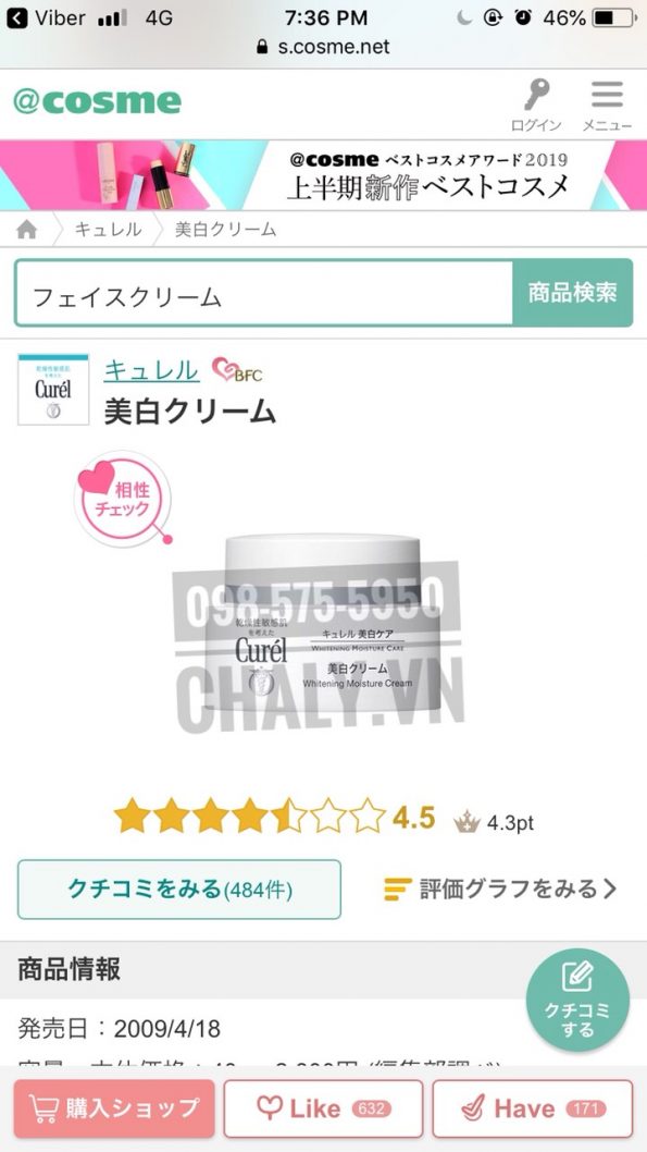 – Lọt top kem dưỡng trắng cho da nhạy cảm tốt nhất 2018 trên chuyên trang Cosme uy tín