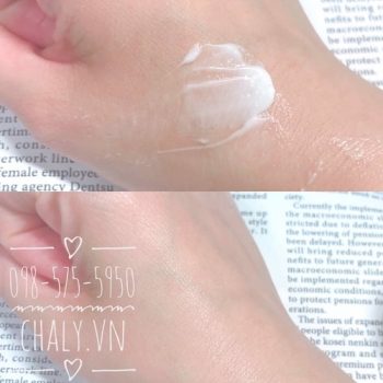 Texture của kem dưỡng trắng da Kose Nhật ban ngày & đêm màu trắng và lỏng như sữa chua, không gây bít tắc lỗ chân lông, không gây mụn
