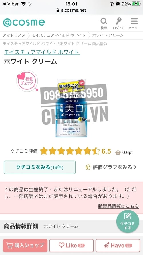– Review kem dưỡng trắng Kose cao, tận 6.5 trên Cosme Nhật Bản