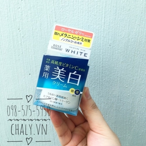 – Kem dưỡng trắng Kose moisture mild white cream có thể dùng cả ban ngày và ban đêm
