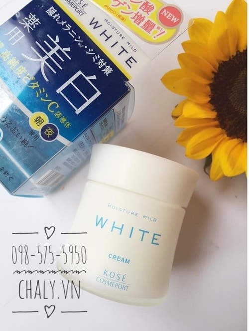 Mình phát hiện ra kem dưỡng trắng trị thâm kose moisture mild white cream trong 1 lần tìm kiếm loại kem dưỡng da không cồn tốt để dùng