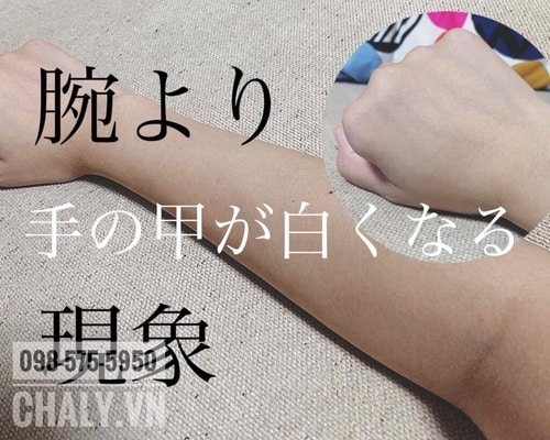 Để da trắng hơn thực sự thì cần tầm nửa năm. Trong ảnh mình chụp cả phần tay của mình sau khi thoa kem để mọi người thấy rõ tone da sáng lên sau khi thoa như thế nào. Phần bày tay là có thoa kem, trong khi đó phần cánh tay thì không thoa