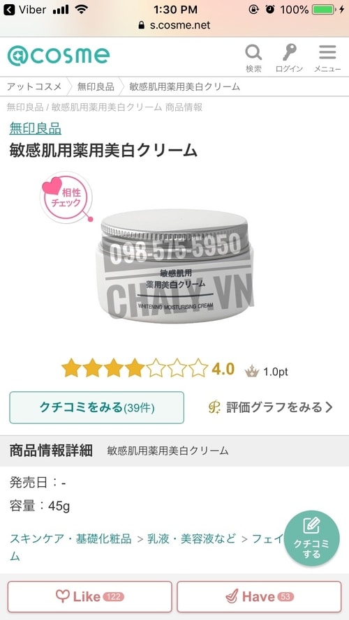 – Sản phẩm được review cao 4.0 trên chuyên trang Cosme Japan uy tín