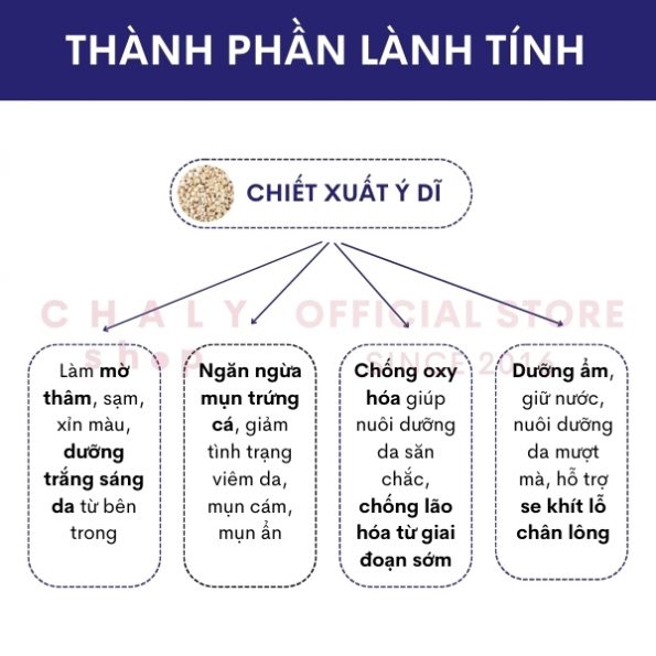 – Mục đích sử dụng: Cấp ẩm, dưỡng da mịn mượt. Làm trắng da và mờ vùng da thâm sạm xỉn