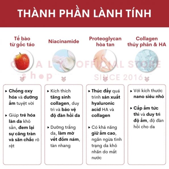 – Kích thích tăng sinh collagen, duy trì và bảo vệ độ đàn hồi da