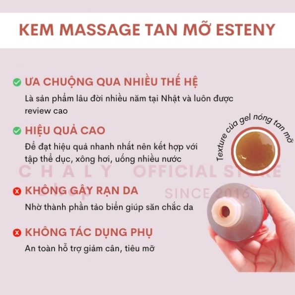 - 2 Công dụng của kem tan mỡ bụng Esteny Hot Massage Gel
