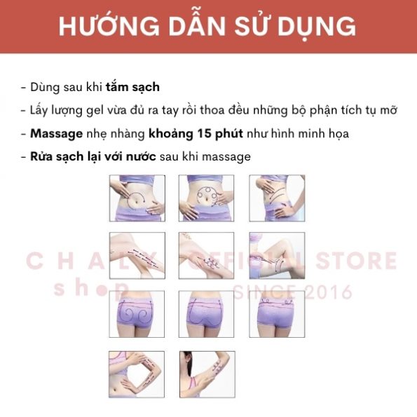– Bạn lấy 1 lượng gel vừa đủ ra tay rồi thoa đều đặc biệt là những bộ phận tích tụ mỡ