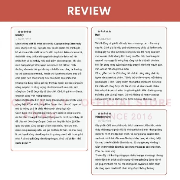 “Mình không biết đã mua bao nhiêu tuýp gel nóng Esteny này nữa, không nhớ nổi