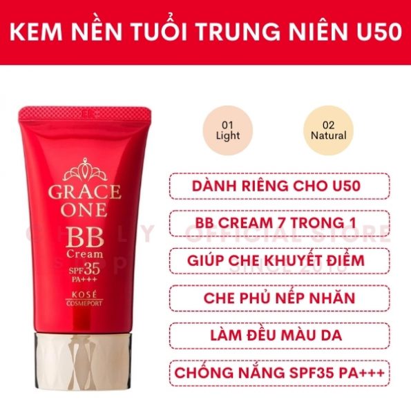 – BB cream Kose Grace One là sản phẩm kem nền đa năng, all in one được thiết kế dành riêng cho chị em tuổi trung niên, tầm khoảng 45 tuổi trở lên