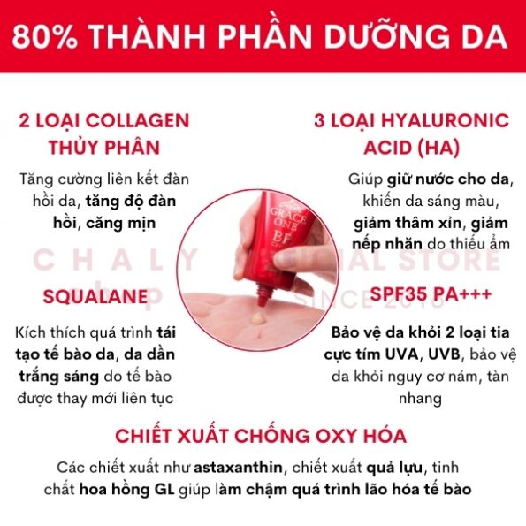 Bên cạnh kem dưỡng tái tạo da chống lão hoá Kosekem dưỡng trắng trị nám tuổi trung niên mà Chaly đã giới thiệu 2 năm nay và được vô vàn review khen ngợi cùng với lượng khách quen repeat đông đảo, kem nền all in one Kose Grace One BB Cream là sản phẩm đáng để đầu tư cho các chị em có nhu cầu trang điểm nhẹ nhàng, che phủ khuyết điểm nhằm có một gương mặt và thần thái hoàn hảo mỗi khi ra đường