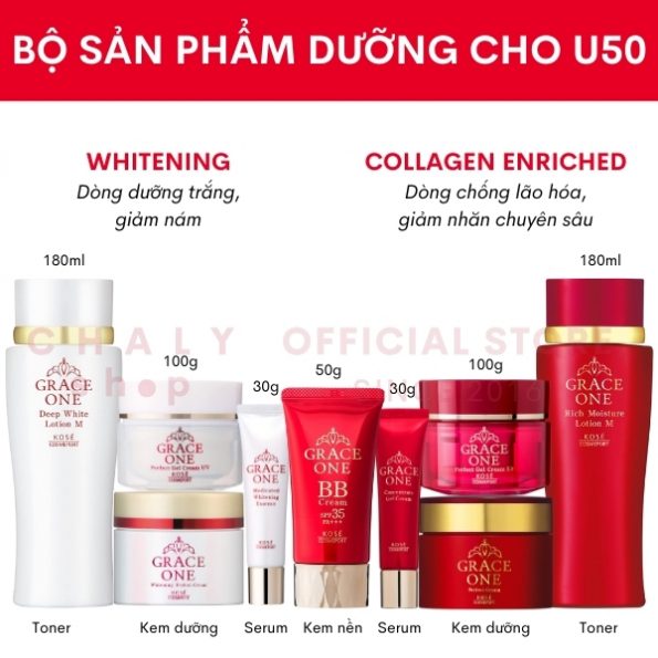 Với bề dày nhiều năm nghiên cứu về tình trạng da của phụ nữ tuổi U50, sản phẩm dòng Grace One của Kose đảm bảo đáp ứng đầy đủ những nhu cầu, bù đắp đủ những thiếu sót của làn da tuổi xế chiều đã vào giai đoạn lão hoá mạnh cần sự chăm sóc đặc biệt