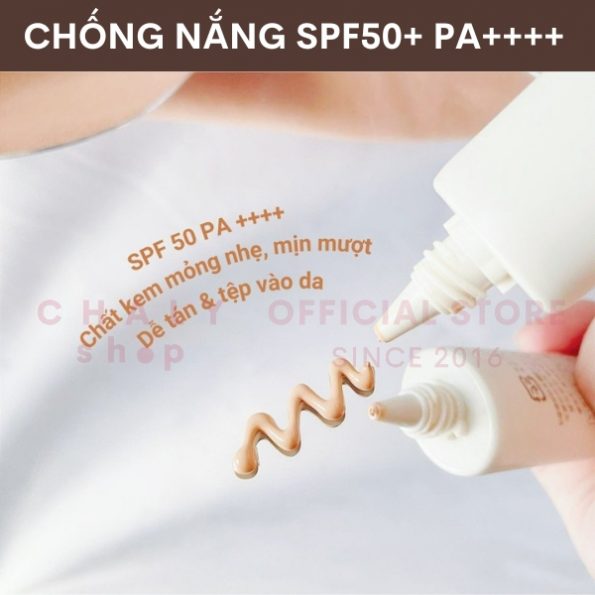 Mình dùng tuýp kem nền này vào những hôm lười không muốn thoa kem chống nắng. Bởi vì nó tích hợp cả chống nắng bên trong luôn rồi mà keke Chỉ cần thao lớp kem nền này nhẹ xong phủ thêm tí phấn nữa là trông chả khác trang điểm tự nhiên mấy đâu. Da vẫn được bảo vệ tốt mà vẫn xinh yêu