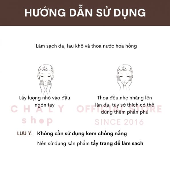 – Tạo nền da tự nhiên, sáng hồng nhẹ nhàng, hơi nâng tone nhẹ so với màu da gốc một chút