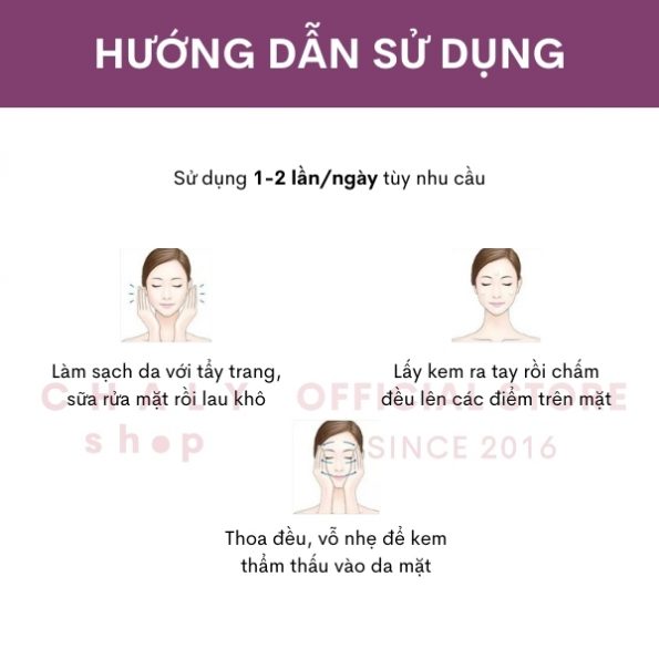 – Sản phẩm phù hợp với phụ nữ từ 25 tuổi trở lên, đặc biệt là trên 30 tuổi, những người muốn tập trung chống lão hoá da hiệu quả
