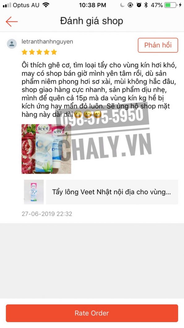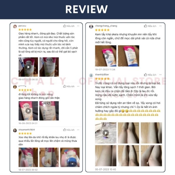 Mình quyết định mua cái này từ 2 tháng trước và mình đã không hề hối hận.Tẩy sạch, nhẹ dịu, mềm da, nhanh chóng, không đau đớn.Mùi rất dễ chịu. Có cái thìa để phết kem với gạt lông tiện quá trời nữa. Hộp này mình dùng mới 2 lần mà hết 1/3 rồi, hơi tốn do mình tẩy nguyên tay chân luôn. Chắc phải đi mua lại quá. Mà không nhanh mọc lại lông đâu, tầm hơn 1 tháng mới lên lại í, mà lông mềm với nhạt màu hơn. Ưng