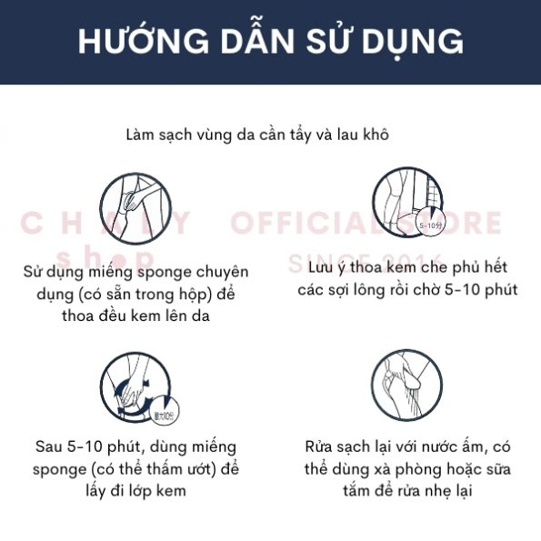 – Tẩy lông sạch và nhanh, chỉ 5-10 phút cho hiệu quả tức thì. Không tốn thời gian, dễ sử dụng