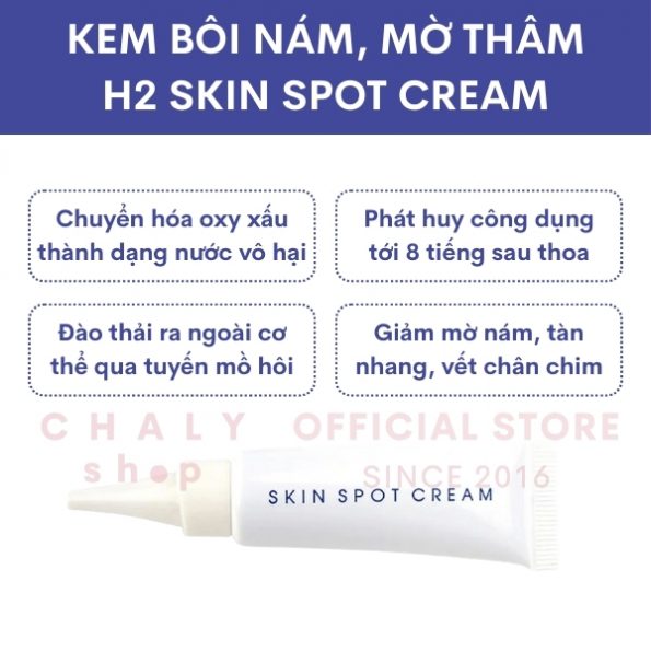 Kem bôi nám H2 Skin Spot Cream Nhật Bản là sản phẩm kem chuyên biệt có thành phần độc đáo, giúp đào thải oxygen tích tụ bên trong da ra ngoài triệt để trong suốt 8 tiếng ngủ mỗi đêm