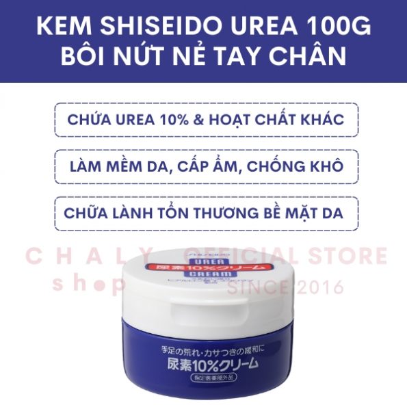 Kem trị nứt nẻ gót chân, bàn tay Shiseido Urea Cream 10% Nhật với thành phần chứa 10% urea có khả năng đặc trị những vùng da nứt nẻ, thô ráp thậm chí chảy máu, trả lại cho bạn bề mặt da ẩm mượt, mịn màng