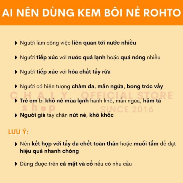 – Kem đặc trị nứt nẻ, dị ứng da tay chân Rohto của Nhật có thể dùng cho mọi đối tượng và mọi vùng da trên cơ thể