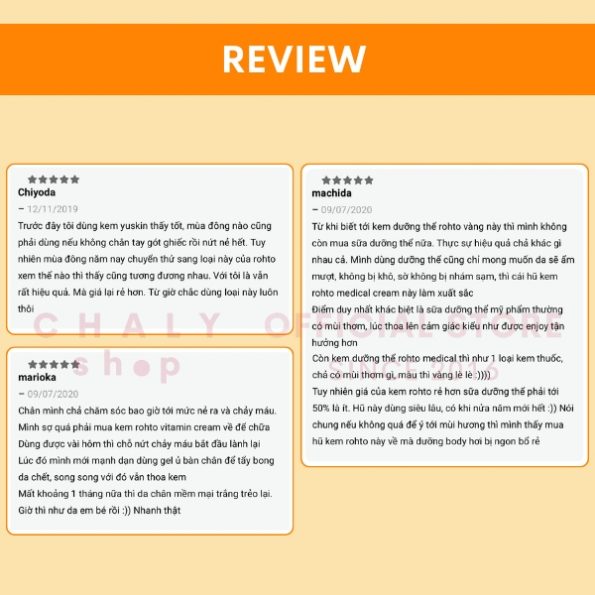 2. Review của Khách hàng về Shop Chaly