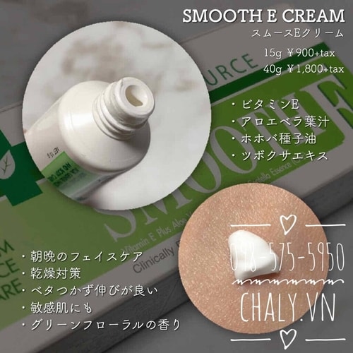 Chất kem Smooth E cream của Nhật thẩm thấu nhanh, không gây bí rích. Thành phần ưu tú nên chỉ 1 tuýp có thể sử dụng với nhiều mục đích đa dạng cùng mang lại hiệu quả cao