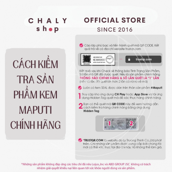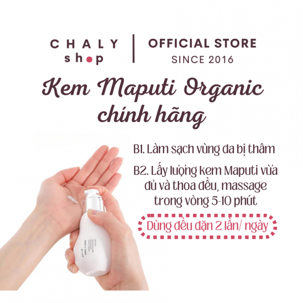 – Kem trị thâm Maputi cho vùng kín tại Chaly shop là sản phẩm chính hãng, đầy đủ tem phụ và hoá đơn