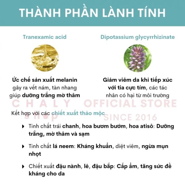 + Tinh chất trái chanh, hoa bươm bướm, hoa artiso: Dưỡng trắng, mờ thâm và sạm