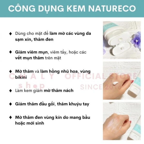 Mình dùng natureco trị thâm nách, trước mình có cạo nhổ nên bị thâm. Giờ mình dùng kem này thoa vào nách, kết hợp với tẩy da chết body