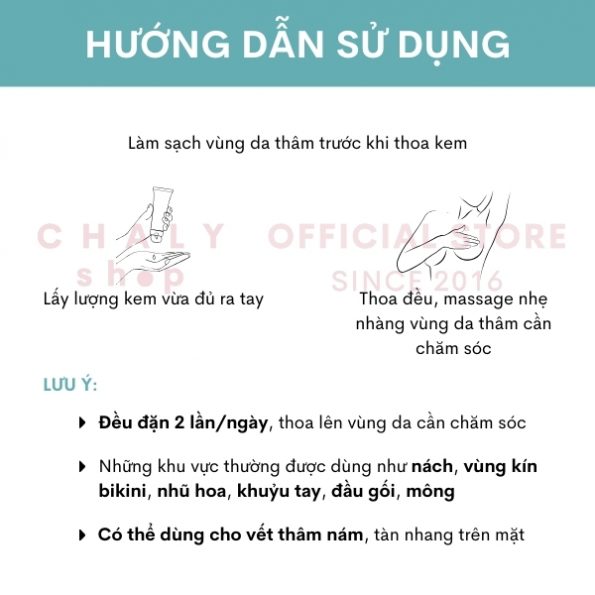 – Thoa lên vùng da cần cải thiện thâm làm hồng, ngày 2 lần