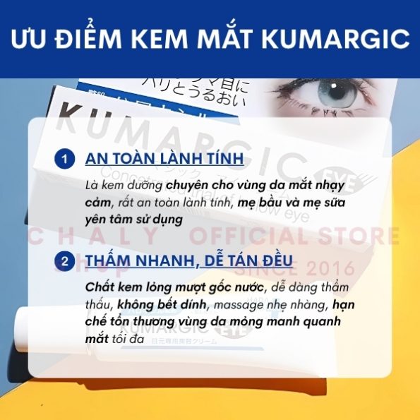 - 2 Công dụng của kem khử quầng thâm vùng mắt của Nhật Kumargic eye cream