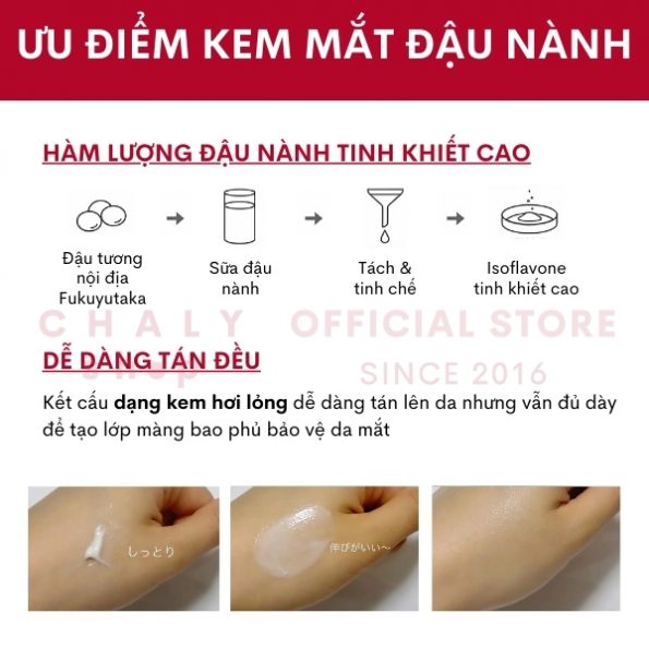 – Chị em có da mắt nhạy cảm cũng hoàn toàn yên tâm sử dụng bởi chiết xuất đậu nành vô cùng dịu nhẹ
