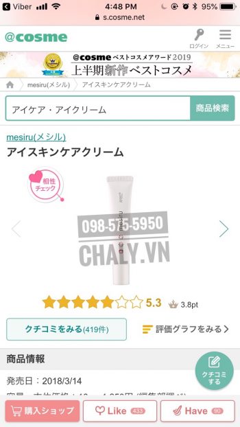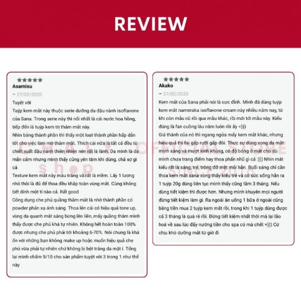 “Kem mắt của Sana phải nói là cực đỉnh. Mình đã dùng tuýp kem mắt nameraka isoflavone cream này nhiều năm nay, từ khi còn mẫu cũ rồi qua mẫu khác, rồi mới tới mẫu này. Kiểu đúng là fan cuồng lâu năm luôn rồi ấy =)))