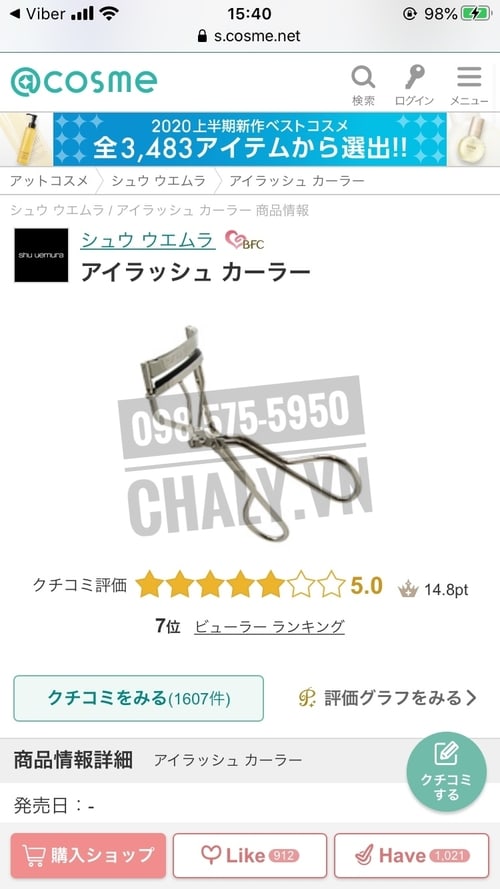 Được review với số điểm cao chót vót 5.0 cùng hàng nghìn đánh giá khen ngợi trên chuyên trang review mỹ phẩm Nhật hàng đầu cosme.net, kẹp bấm mi Shu của Nhật chắc chắn là cây kẹp mi cong mà bất kỳ chị em nào cũng ao ước sở hữu
