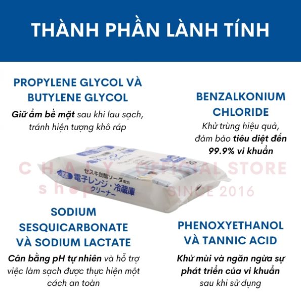 Thành phần khăn ướt vệ sinh thực phẩm lò vi sóng và tủ lạnh S Select Nhật 20 tờ