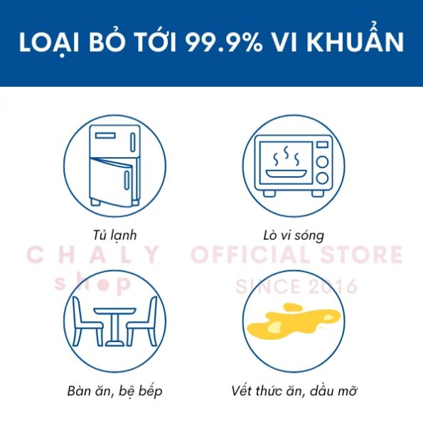 – Chứa nhiều thành phần làm sạch, giúp tiêu diệt tới 99.9% vi khuẩn gồm: