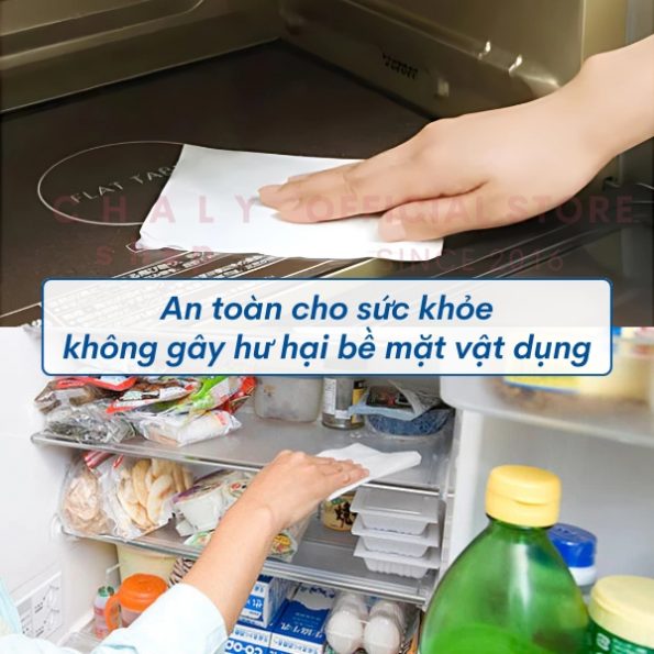 – Là loại khăn ướt sử dụng một lần dùng để vệ sinh an toàn các vật dụng bảo quản thức ăn như tủ lạnh, lò vi sóng