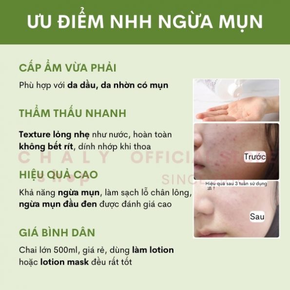 – Đặc biệt nếu có khả năng tiêu trừ bã nhờn, làm sạch lỗ chân lông, hoặc là toner trị mụn Nhật Bản có khả năng kháng viêm trị mụn thì càng tốt