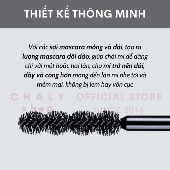 – Thiết kế thông minh với các sợi mascara mỏng và dài, tạo ra lượng mascara dồi dào, giúp chải mi dễ dàng chỉ với một hoặc hai lần