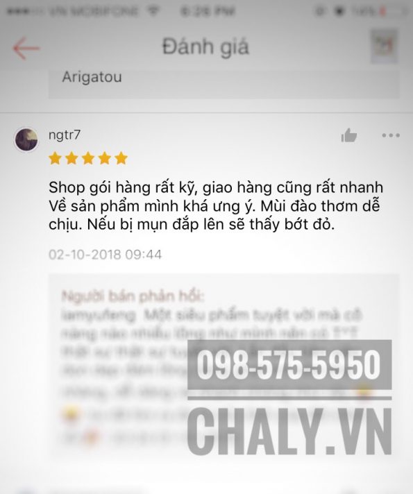 Bạn khách shopee: “Mùi đào thơm dễ chịu. Nếu bị mụn đắp lên sẽ thấy bớt đỏ”