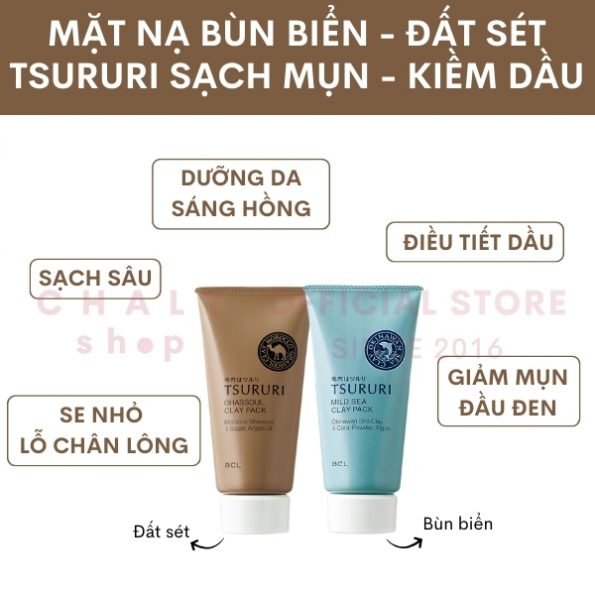 * Lưu ý: Người có da nhờn mụn, nhiều mụn đầu đen nhưng tương đối nhạy cảm có thể lựa chọn mặt nạ đất sét Tsururi mild sea clay pack màu xanh để dịu nhẹ với da hơn nữa