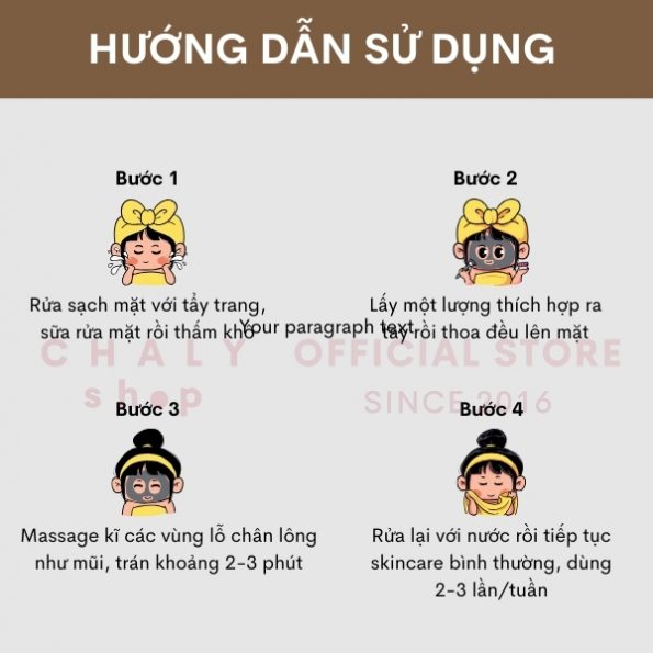 – Mục đích sử dụng: Hút dầu, làm sạch lỗ chân lông, trị mụn đầu đen, giảm mụn