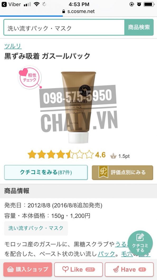 Shop Nhật Chaly cam kết cung cấp sản phẩm mặt nạ đất sét Nhật Tsururi ghassoul mineral clay pack và nhiều sản phẩm mặt nạ nội địa Nhật chính hãng 100%. Quý khách có thể đặt mua bằng các cách sau
