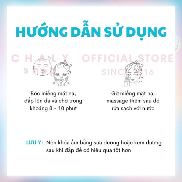 – Bóc miếng mặt nạ, đắp lên da và chờ trong khoảng 8 – 10 phút