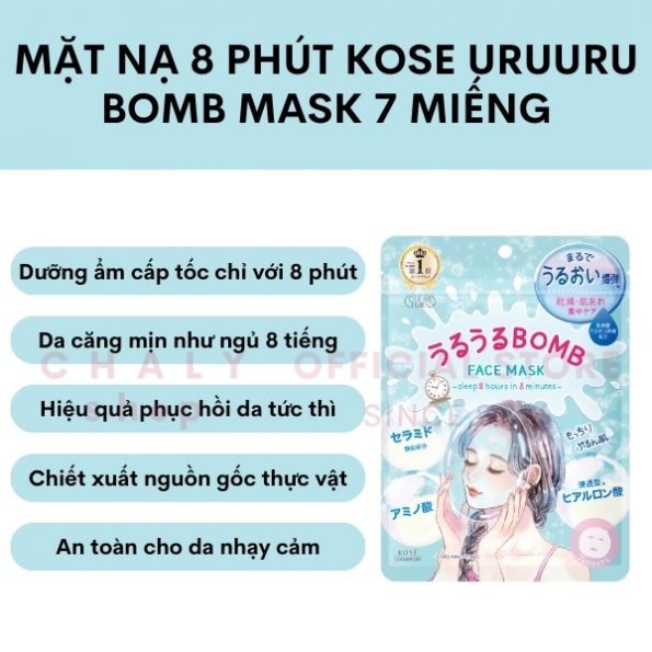 - 1 Thông tin chi tiết – Mặt nạ dưỡng ẩm 8 phút Kose Uruuru Bomb Mask Nhật