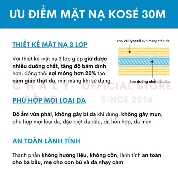 – Do đó, mặt nạ Kose hộp 30 miếng có thể dùng hàng ngày mà không sợ kích ứng hay lên mụn