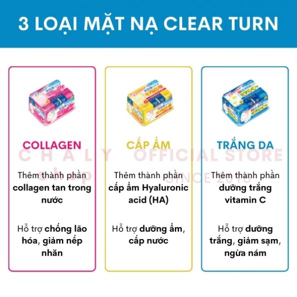 Tôi đã dùng 2 loại Collagen (màu hồng) và Hyaluronic Acid HA trong serie Kose Clear Turn Mask Sheet và thấy khá thích, nên mua thêm mask Vitamin C làm trắng da dùng thử