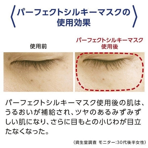 – Có thể xem hình thực nghiệm bên dưới để thấy rõ sự biến mất ngay tức thì của những nếp nhăn nhỏ quanh mắt sau khi sử dụng mặt nạ Shiseido Senka silky mask đắp trong 15 phút