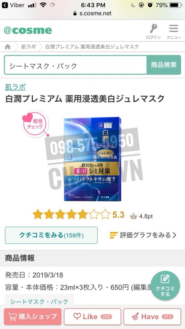 – Mới ra đời gần đây nhưng mặt nạ trị thâm Nhật Bản Hada Labo premium shirojyun cooling jelly in mask đã ngay lập tức nhận review cao chót vót, tận 5.3 trên Cosme Ranking với hàng trăm đánh giá