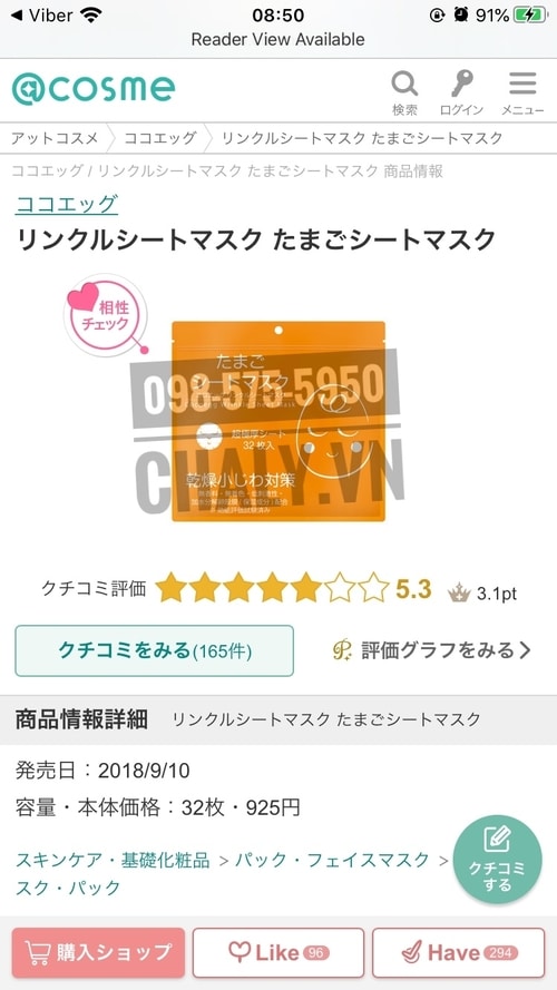 – Review mặt nạ Cocoegg tại Nhật rất cao, số điểm 5.3 với hàng trăm đánh giá trên Cosme Nhật