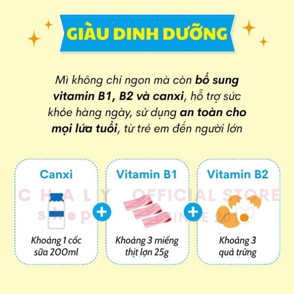 – Mì không chỉ ngon mà còn bổ sung vitamin B1, B2 và canxi, hỗ trợ sức khỏe hàng ngày